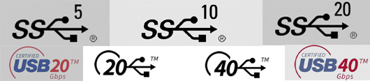 | USB 4.0 Gen 3x2 (USB4 ™) | 40 Gbit/s | USB-C | 5,0 A | < 0,8 m | |
